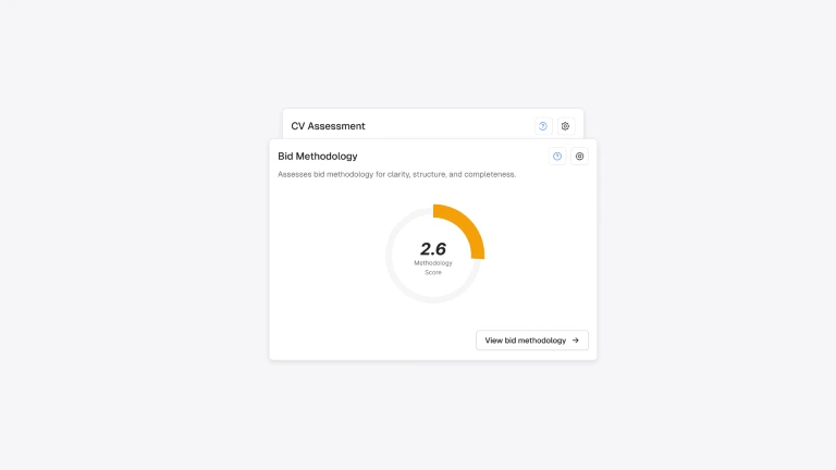 Coverage and comparability. Before submission. - Coverage check against client criteria. What’s answered, thin, or missing. - Scope gaps and risk drivers surfaced early. A handover-ready baseline for delivery. - Compare offers on a consistent requirement set. Faster, fairer leveling.